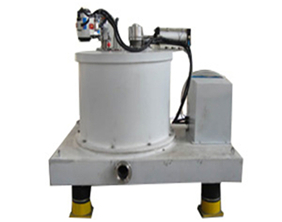 PG、PGZ系列離心機是立式刮刀下部卸料、連續運轉、間歇出料、程序控制的全自動過濾型離心機。PG為半自動離心機,電動機驅動轉鼓旋轉,達到進料轉速狀態時,待分離的物料經過料管進入高速旋轉的轉鼓內,進料達到預定容積後停止進料,升至高速分離,在離心力作用下,物料通過濾布(濾網)實現過濾,液相穿過濾層經轉鼓孔甩至空腔經出液管排出,固相則被截留在轉鼓內形成圓桶狀濾餅,隨后可對濾餅進行洗滌,達到分離要求後,轉速降到卸料轉速狀態,刮刀裝置動作,將濾餅從轉鼓內壁刮下經離心機下部出料口排出。